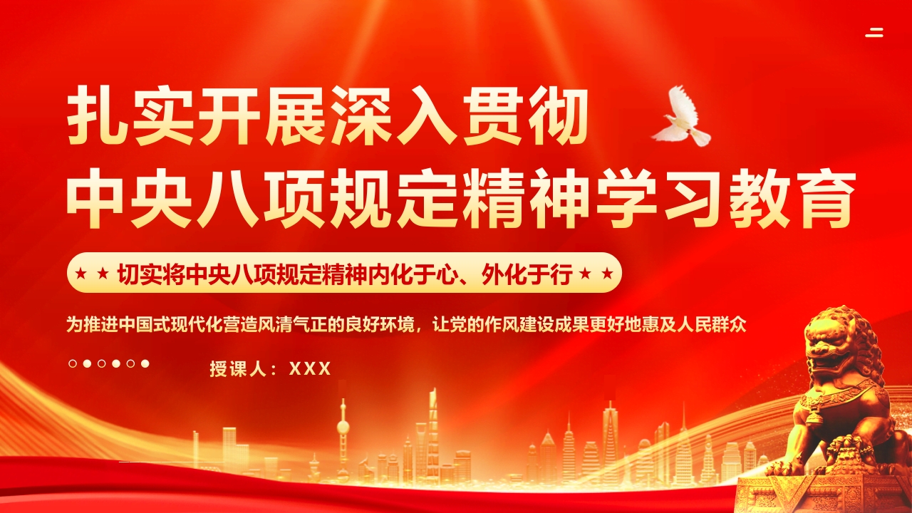 党课PPT课件含讲稿:扎实开展深入贯彻中央八项规定精神学习教育专题辅导授课
