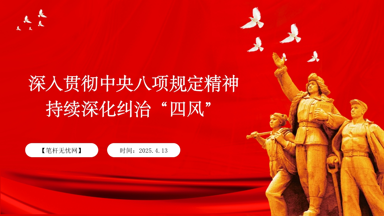 (党课ppt+讲稿)深入贯彻八项规定精神 持续深化纠治“四风” (5800字,17张)PPT