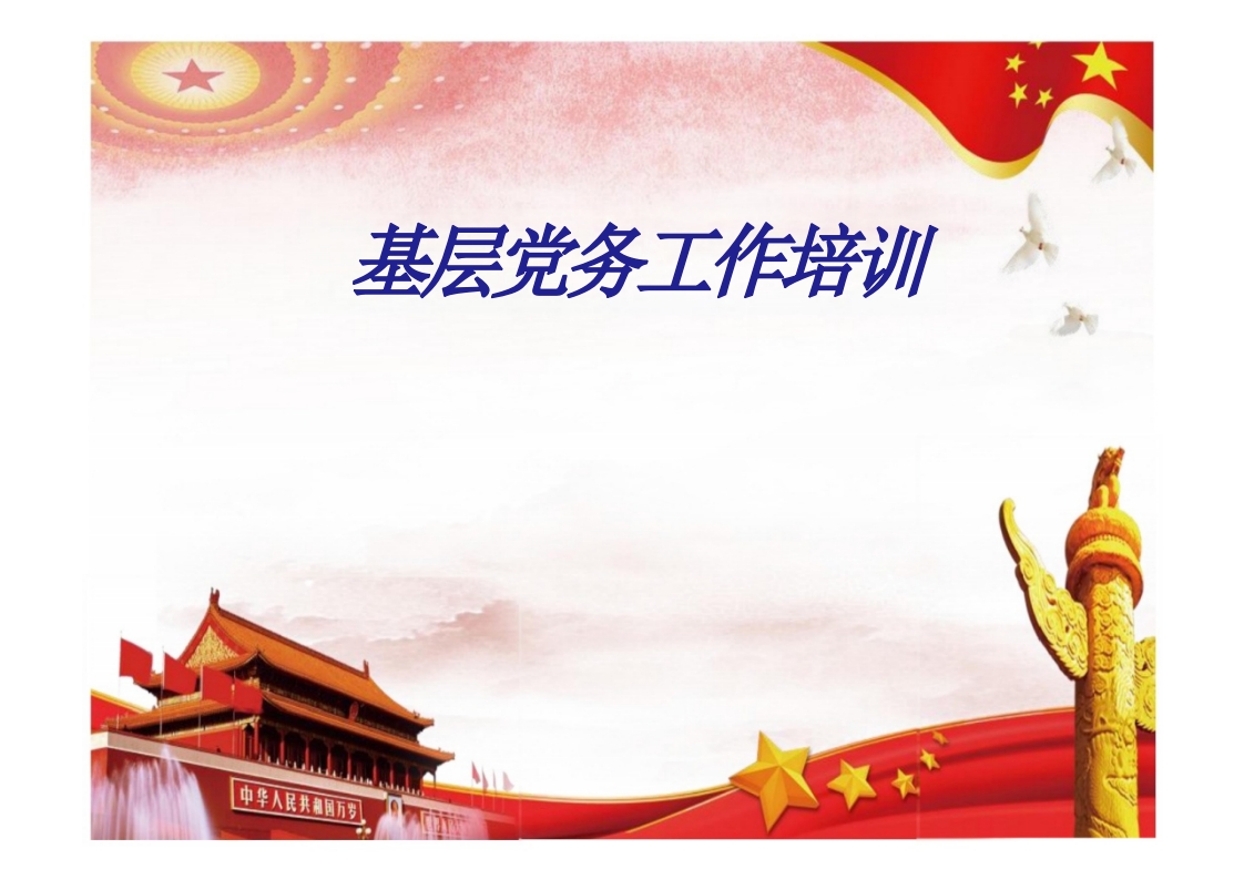 基层党务工作培训和大家共同探讨四个方面内容:基层党组织的地位、作用和任务基层党建基础业务发展党员工作常工作流程