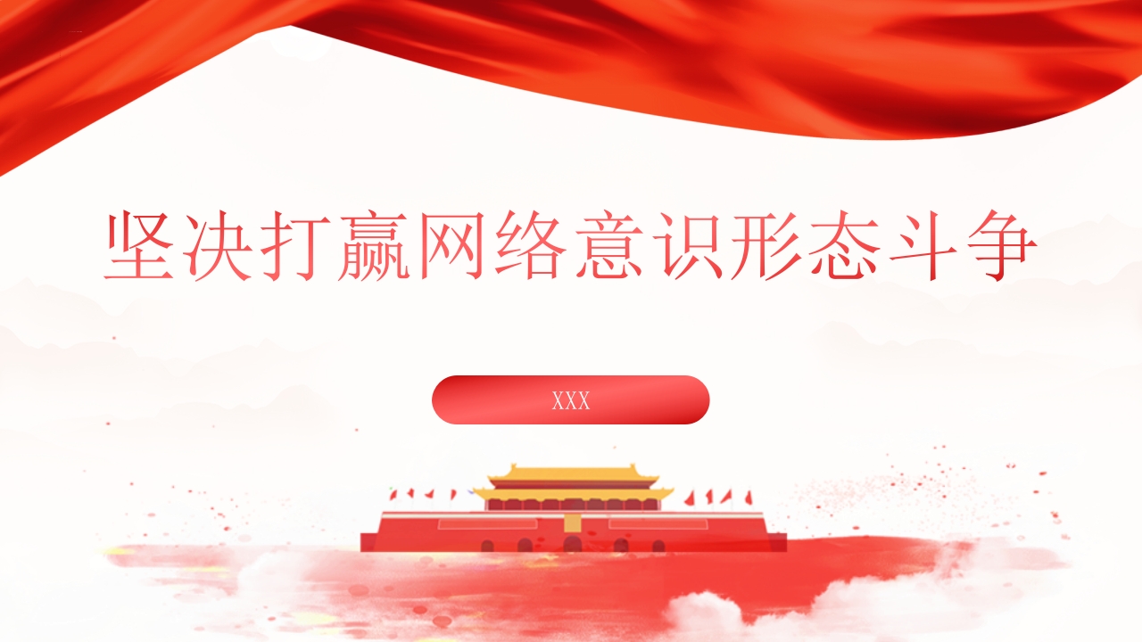 坚决打赢网络意识形态斗争XXX前言意识形态工作是党的一项极端重要的工作。■在信息化时代,互联网日益成为意识形态斗争的主阵地、主战场、最前沿。■能不能牢牢掌握意识形态工作领导权,“关键要看能不能占领网上阵地,能不能赢得网上主导权”。■党的十八大以来,以习近平同志为核心的党中央高度重视网络意识形态工作,在管网治网上出重拳、亮利剑,打赢网络意识形态领域一系列重大斗争,根本扭转了过去网上乱象丛生、阵地沦陷、被动挨打的状况,使网络空间正能量更加强劲、主旋律更加高昂。