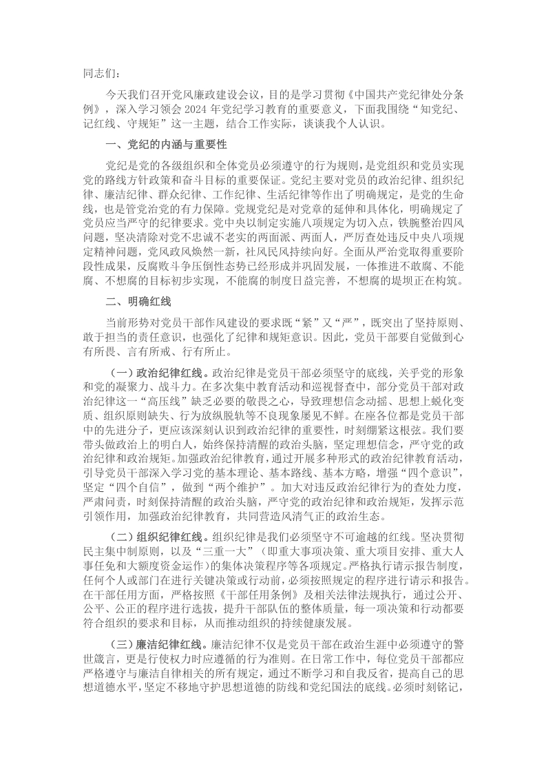 党课讲稿:知党纪,记红线,守规矩