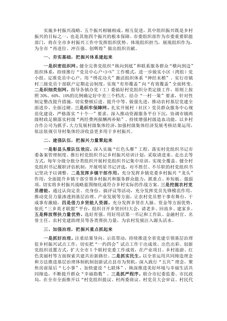 发言材料:筑牢农村党组织战斗堡垒 夯实乡村振兴基础