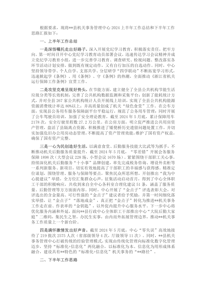 县机关事务管理中心2024年上半年工作总结和下半年工作思路