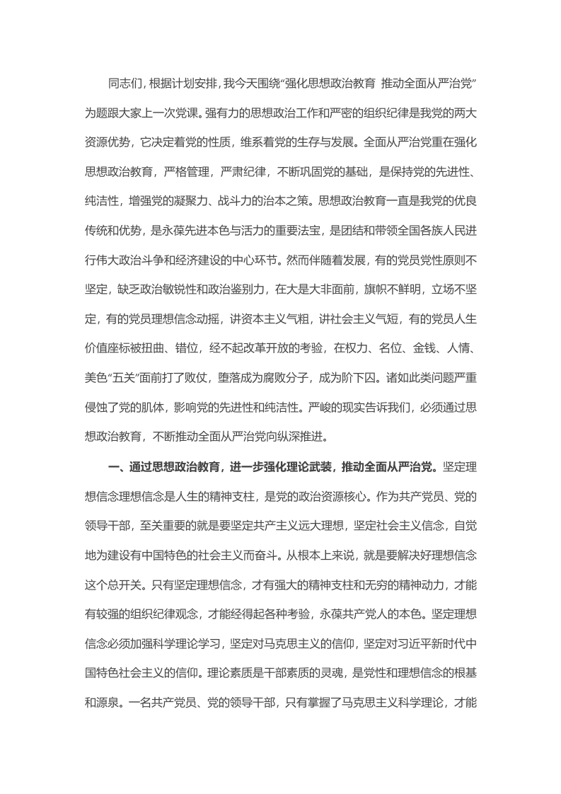首页党纪合集党课:强化思想政治教育 推动全面从严治党