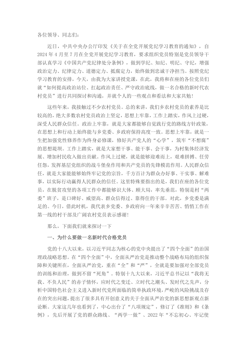 农村党员专题党课讲稿