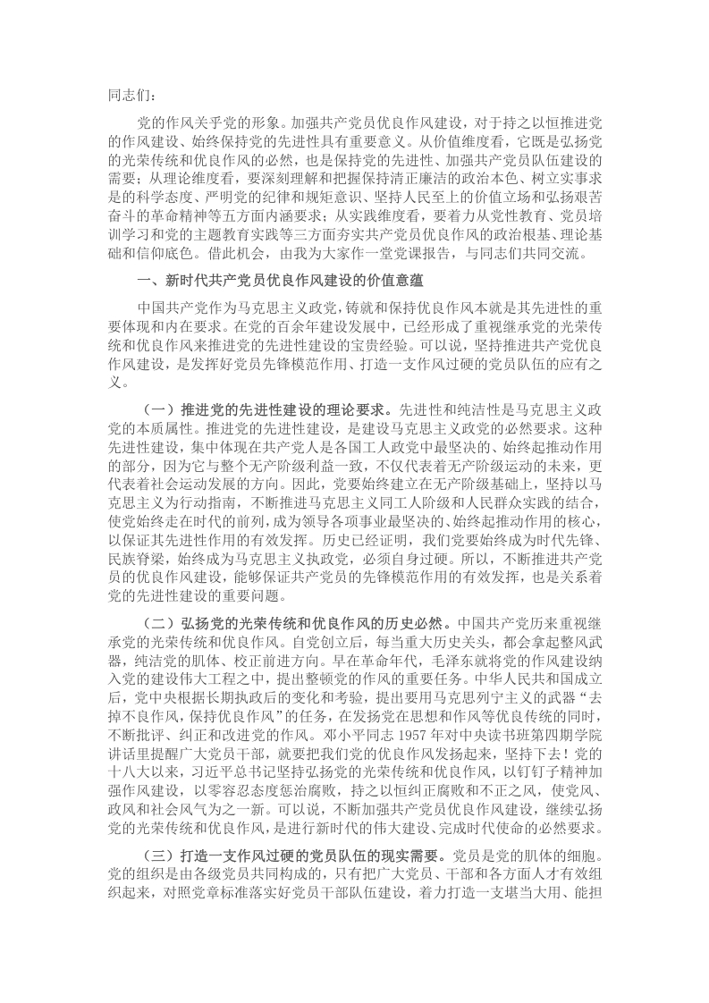 七一党课讲稿:弘扬新时代优良作风 凝聚推进中国式现代化强大力量