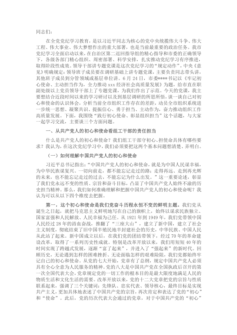 首页党纪合集专题党课:践行初心使命 彰显组织担当
