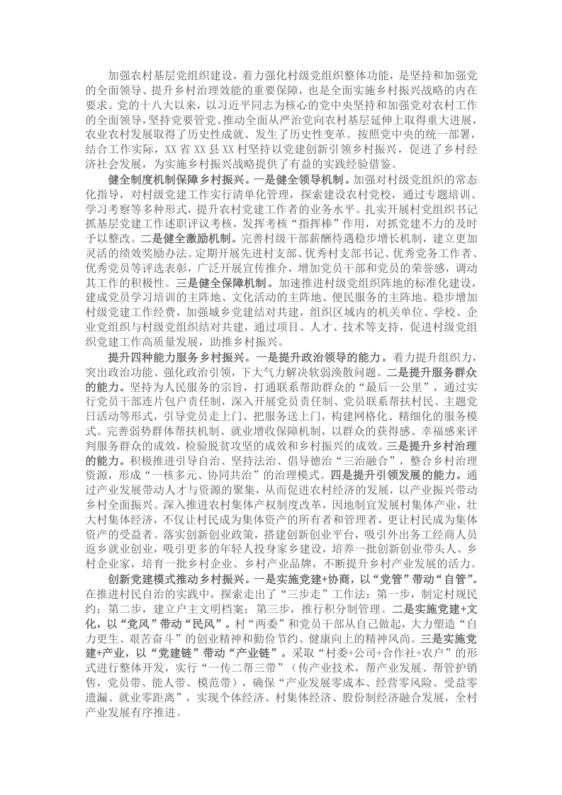 心得体会:坚持以党建创新引领乡村振兴