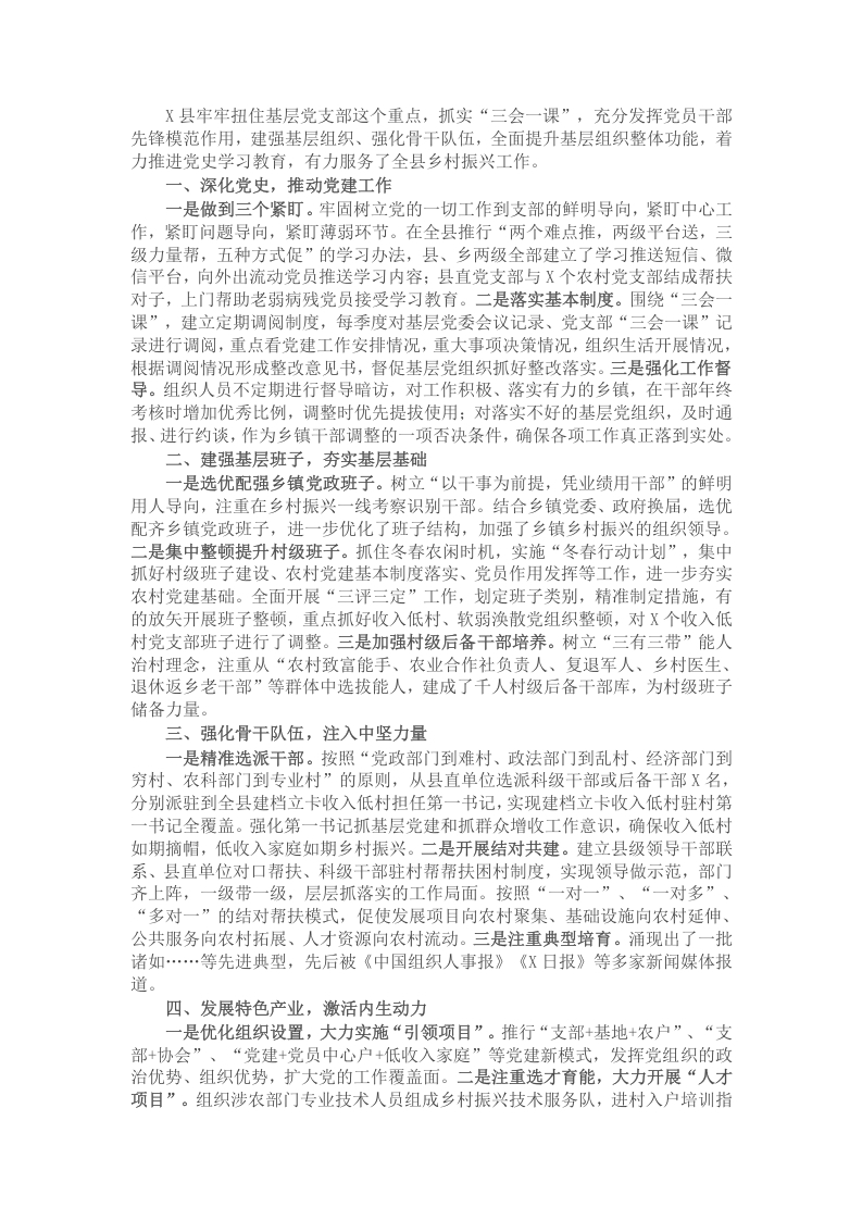 县委组织部工作汇报:深学实做促党建,强基固本助乡村振兴