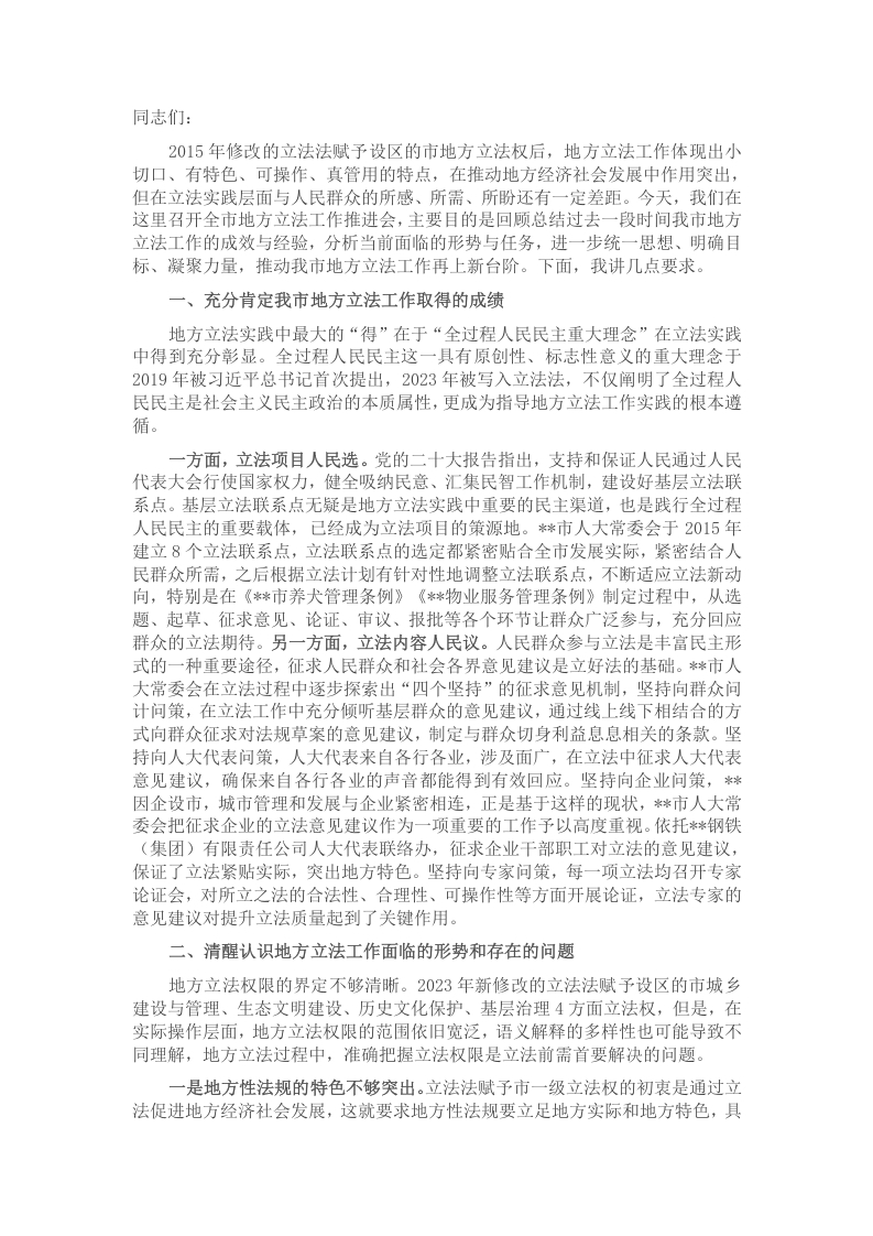 人大主任在2024年全市地方立法工作推进会上的讲话
