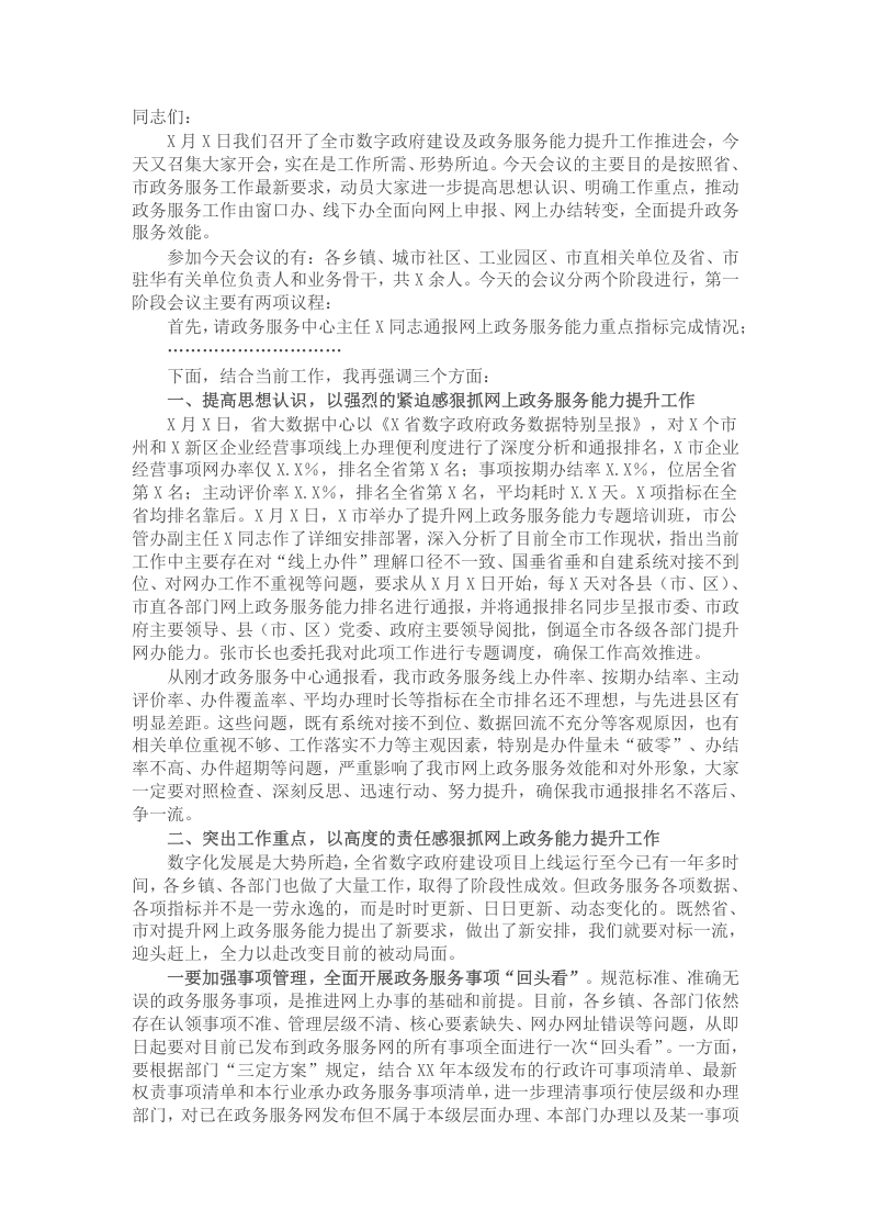首页讲话合集在全市提升网上政务服务能力调度会上的讲话