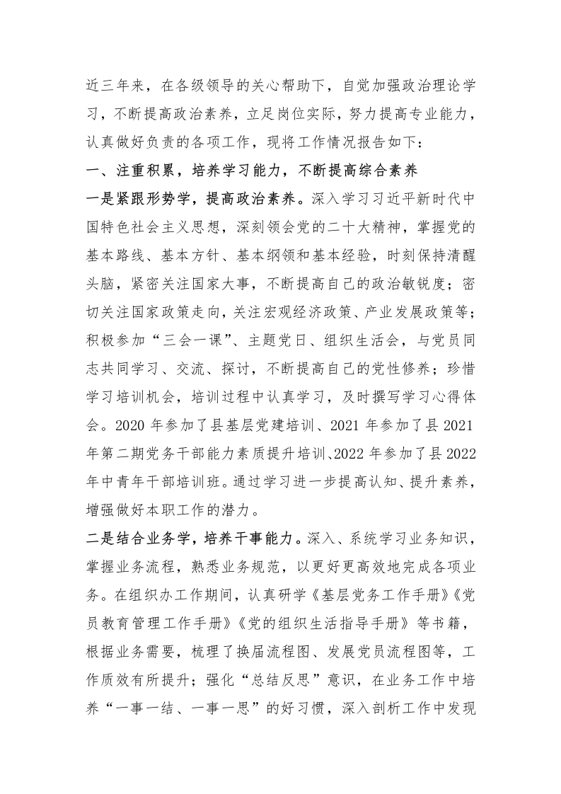 党员干部近三年个人工作总结