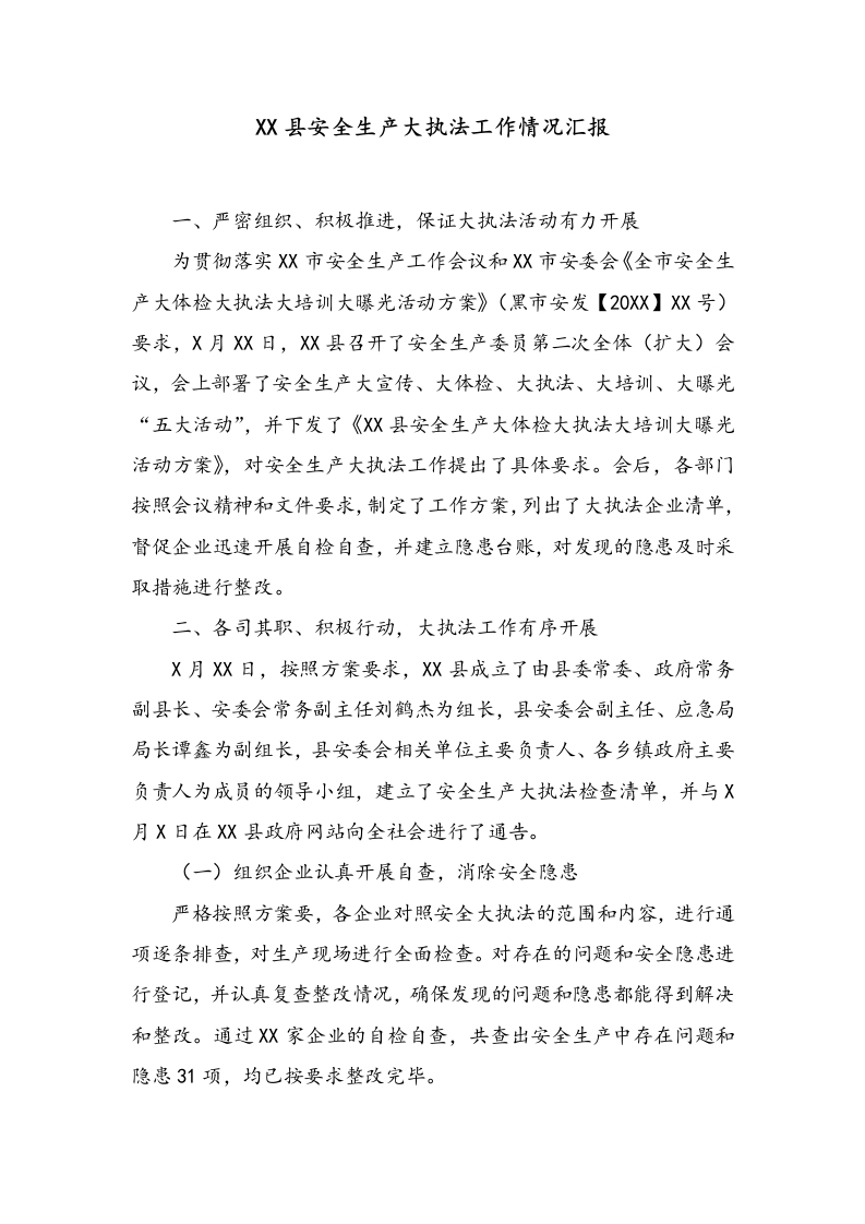 首页汇报合集XX县安全生产大执法工作情况汇报