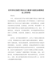 在市深化党建引领社会力量参与基层治理推进会上的讲话