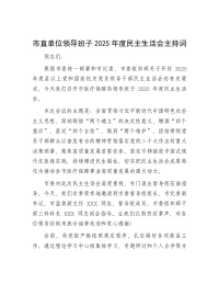 市直单位领导班子2025年度民主生活会主持词
