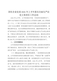 国有企业党支部 2025 年上半年落实全面从严治党主体责任工作总结报告