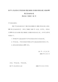 XX市人民政府关于同意XXX国道XXXXX至XXXX桥段改建工程按PPP模式实施的批复【官方抖音