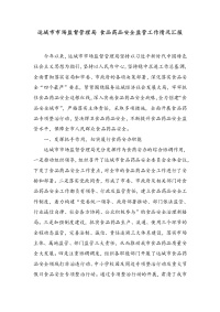 XX市市场监督管理局食品药品安全监管工作情况汇报