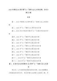 (12篇)2025 年建党104周年暨“七一”表彰大会上的讲话稿、活动方案