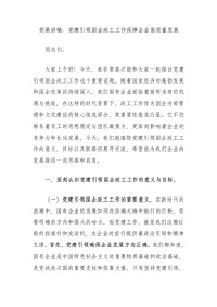 党课讲稿:党建引领国企政工工作保障企业高质量发展