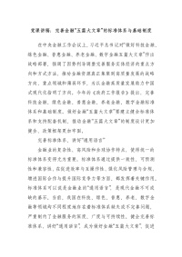 党课讲稿:完善金融“五篇大文章”的标准体系与基础制度