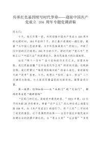 传承红色基因续写时代华章——迎接中国共产党成立104周年专题党课讲稿