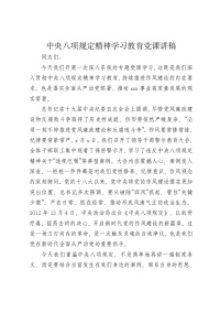 中央八项规定精神学习教育党课讲稿