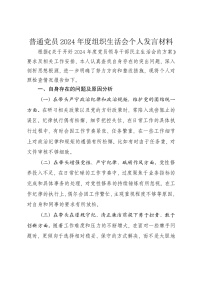 普通党员2024年度组织生活会个人发言材料(四个带头)