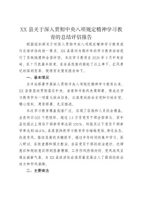 XX县关于深入贯彻中央八项规定精神学习教育的总结评估报告