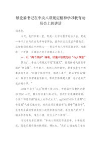 镇党委书记在中央八项规定精神学习教育动员会上的讲话