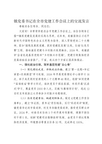 镇党委书记在全市党建工作会议上的交流发言