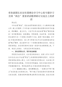 常务副部长在宣传部理论学习中心组专题学习******在2025年全国“两会”上重要讲话精神研讨交流会上的讲话