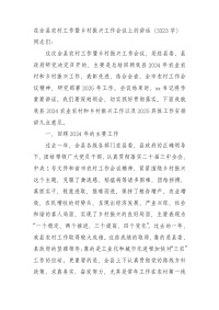 在全县农村工作暨乡村振兴工作会议上的讲话(3323字)