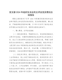 X支部2024年组织生活会民主评议X员情况总结报告