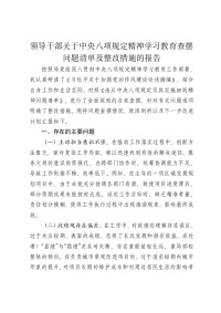 领导干部关于中央八项规定精神学习教育查摆问题清单及整改措施的报告