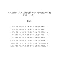 深入贯彻中央八项规定精神学习教育党课讲稿汇编(8篇)20250425