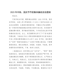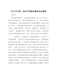 2023年中秋、国庆节前集体廉政谈话提纲
