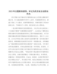 2023年主题教育感悟:牢记为民宗旨 主动担当作为