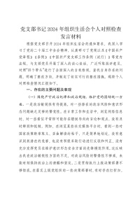 党支部书记2024年组织生活会个人对照检查发言材料(四个带头)