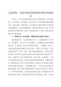 交流发言材料:发挥区域共建优势 筑牢城市党建基石