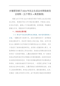 乡镇领导班子2024年民主生活会对照检查发言材料(五个带头+典型案例)