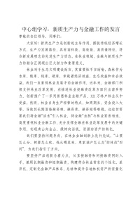 中心组学习:新质生产力与金融工作的发言