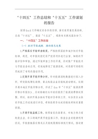 “十四五”工作总结和“十五五”工作谋划的报告