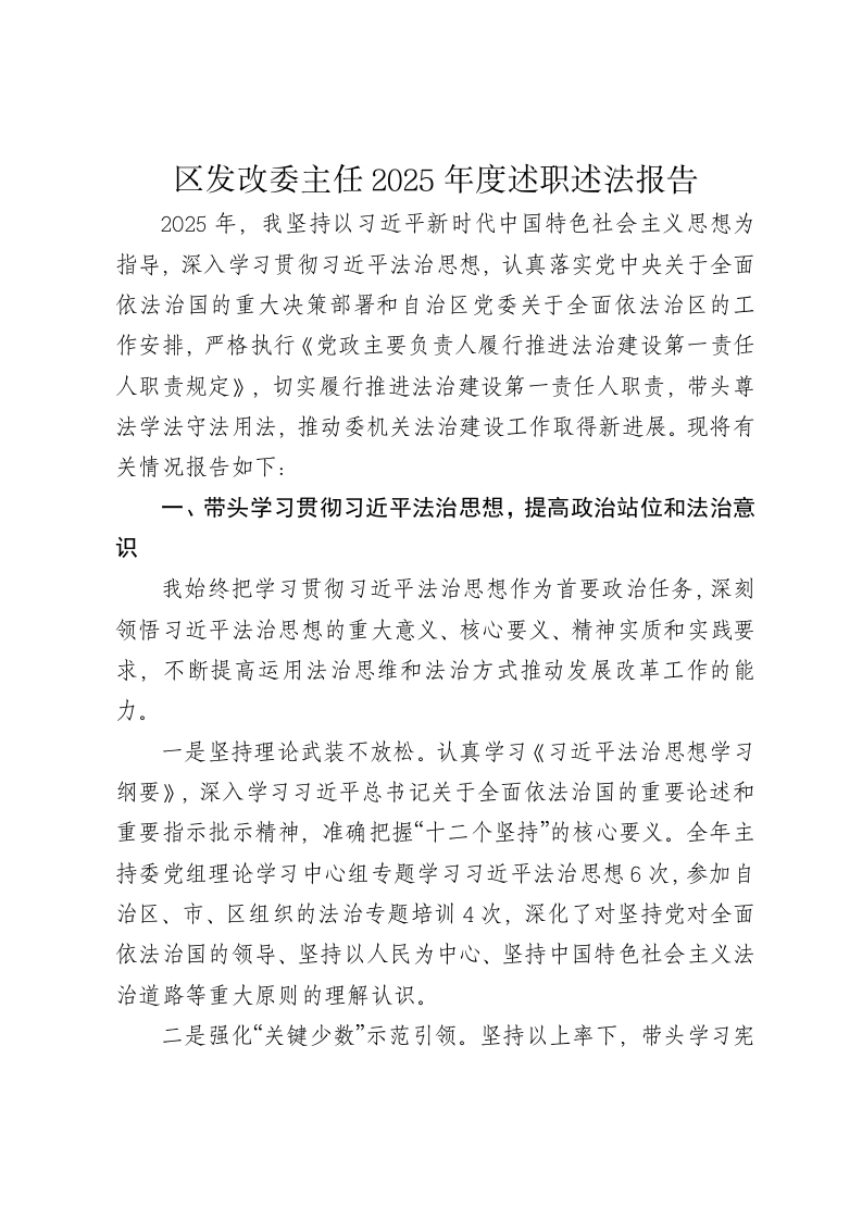 首页范文合集区发改委主任2025年度述职述法报告