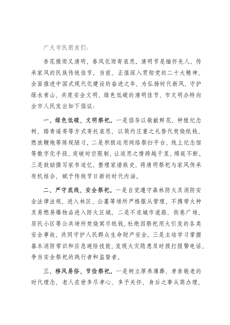 关于2026年清明节期间开展文明祭祀的倡议书