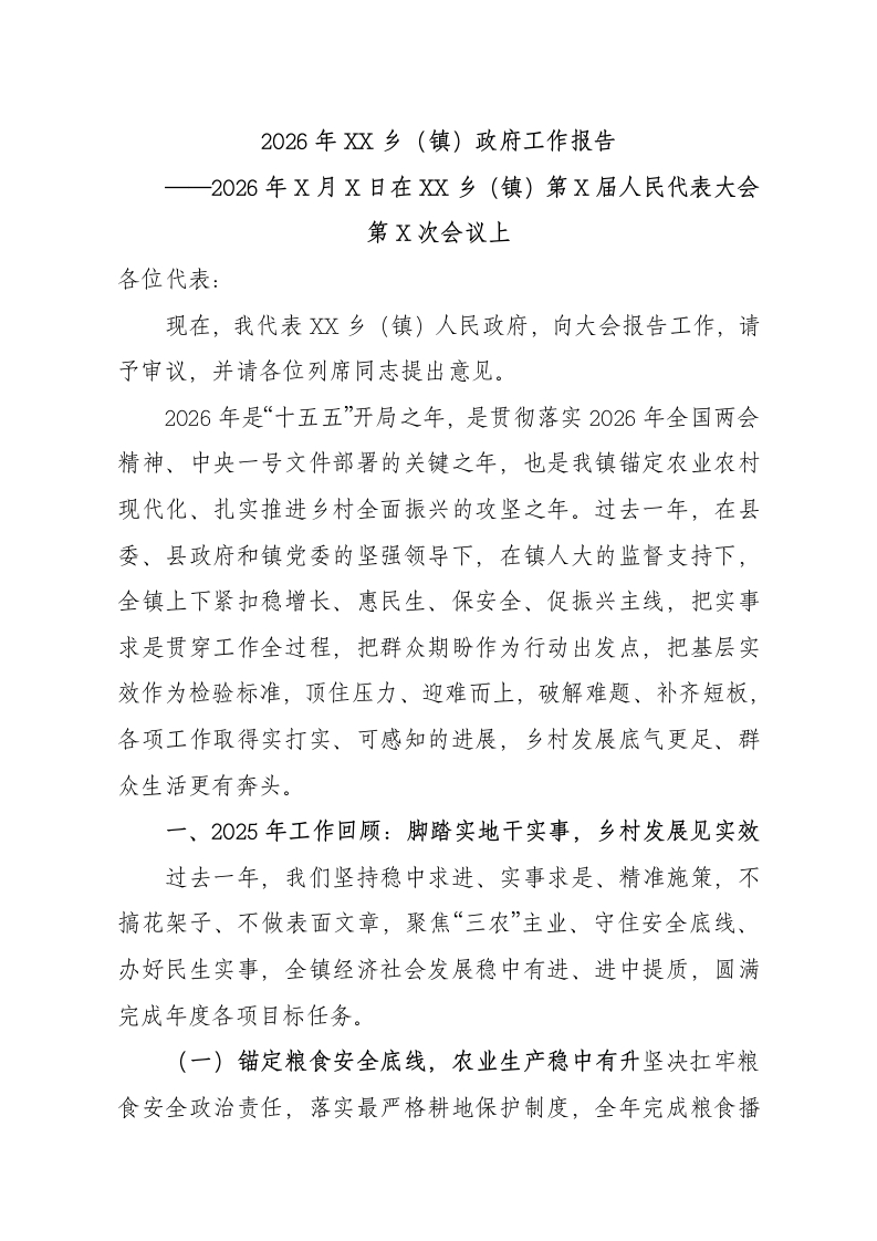 2026年XX乡(镇)政府工作报告