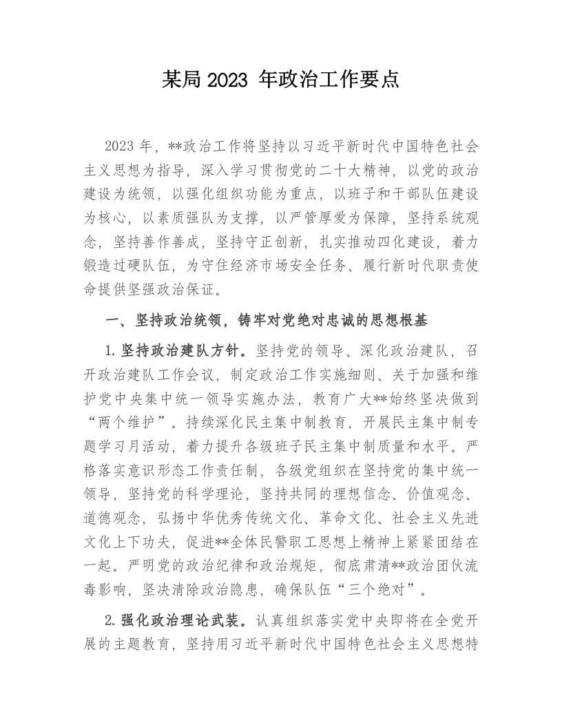 某局2023年政治工作要点