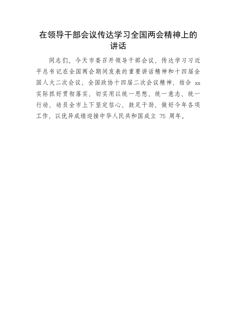 2024年在领导干部会议传达学习两会精神上的讲话3200字
