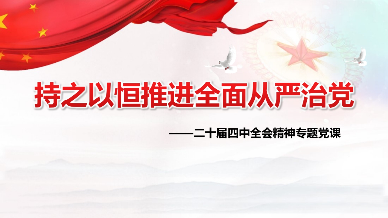 持之以恒推进全面从严治党一二十届四中全会精神专题党课前言党的二十届四中全会是在即将进入基本实现社会主义现代化夯实基础、全面发力的关键时期召开的一次十分重要的会议,全会通过的《中共中央关于制定国民经济和社会发展第十五个五年规划的建议》(以下简称《建议》)对未来五年发展作出顶层设计和战略擘画,是乘势而上、接续推进中国式现代化建设的又一次总动员、总部署,充分体现了以习近平同志为核心的党中央团结带领全党全国各族人民续写经济快速发展和社会长期稳定两大奇迹新篇章、奋力开创中国式现代化建设新局面的历史主动,必将对党和国家事业发展产生重大而深远的影响。