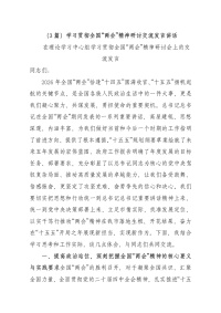 (3篇)学习贯彻全国“两会”精神研讨交流发言讲话